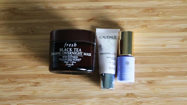 I consider these items to be add-ons. They're not exactly necessary, but they definitely can be added to your routine for a little extra care. Fresh's Black Tea Firming Overnight Mask makes your skin feel more youthful and put-together and also makes your skin feel extra moisturized by the morning. You just apply a generous layer on your face as the last part of your nighttime skincare ritual, then let it work it's magic and wash it off in the morning. I do this 1-2 times a week. Cadualie's eye cream also firms, but targets the wrinkles and lines under the eyes. It's not an extremely heavy eye cream so I use it both morning and night. Tatcha's Luminous Deep Hydration Firming Serum is something I use every day, day and night. In the morning I use it right before my foundation as a primer (because it helps it stick!) and at night I use it as a replacement for the Fresh Tea Firming Overnight Mask the nights I'm not using it. I love it because it leaves my skin with a luminous glow and is super moisturizing, which is helpful when my skin feels especially dry after washing it.