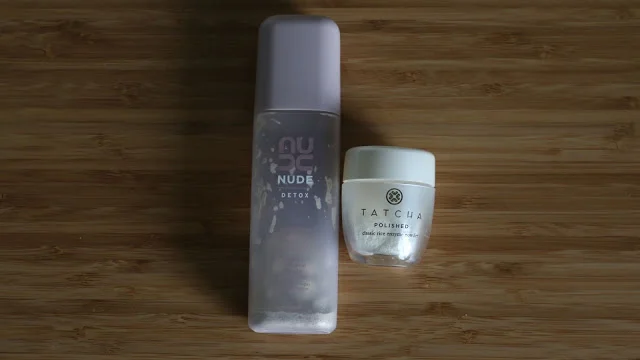 These products are very similar and use them both interchangeably, but I've found that the Nude Detox Brightening Fizzy Powder feels a little more harsh than Tatcha's Polished Rice Enzyme Powder. For both, you just pour a little bit of the powder into your palm and mix with a little bit of water to activate the formula (it starts to feel like a really light foamy paste). Then you massage the product onto wet skin gently and it will exfoliate your skin, making it feel nice and smooth. I tend to like the Nude Detox a little better because the Vitamin C in it also brightens your skin and I can really see the benefits immediately. But like I said, Tatcha's powder is a little more gentle. I use one or the other about three times a week.